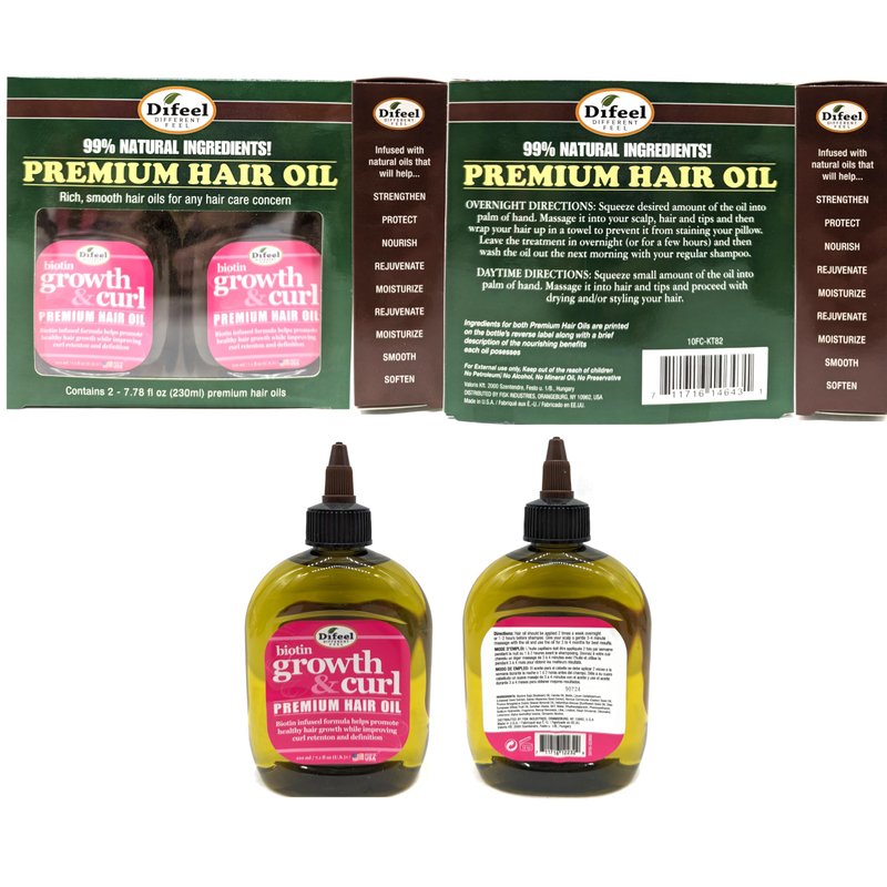 - Natural Oils for Hair - Difeel Growth & Curl Biotin Premium Hair Oil is formulated with Biotin and Wavemax, a plant-based active ingredient for proven long-lasting and defined curls.