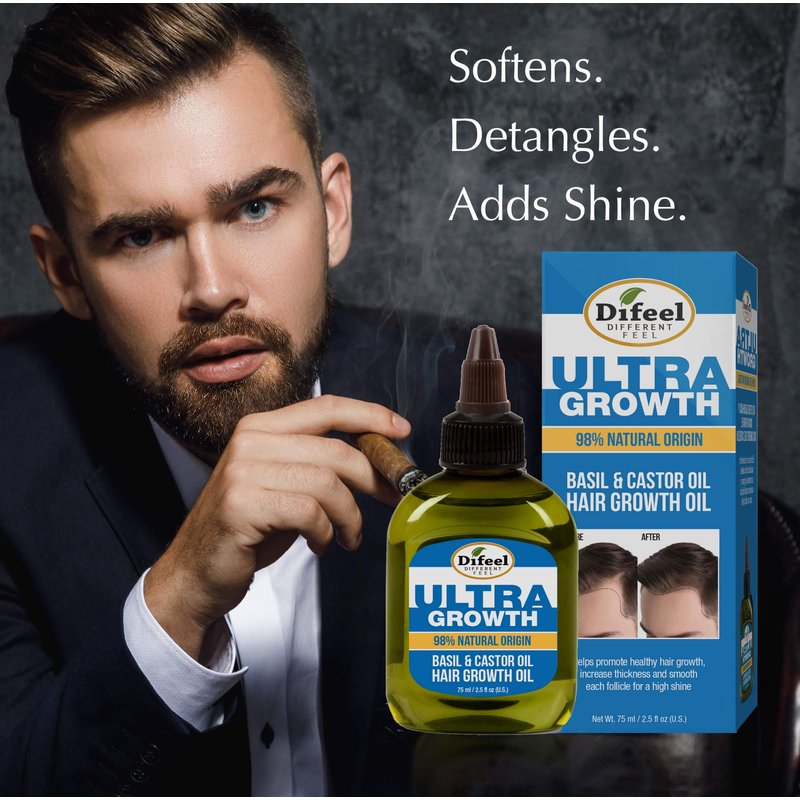 - HAIR REGROWTH FOR MEN OIL: Blended specifically to target the needs of men, Difeel Mens Ultra Growth Basil and Castor Hair Oil promotes growth while smoothing each hair follicle preventing future breakage.