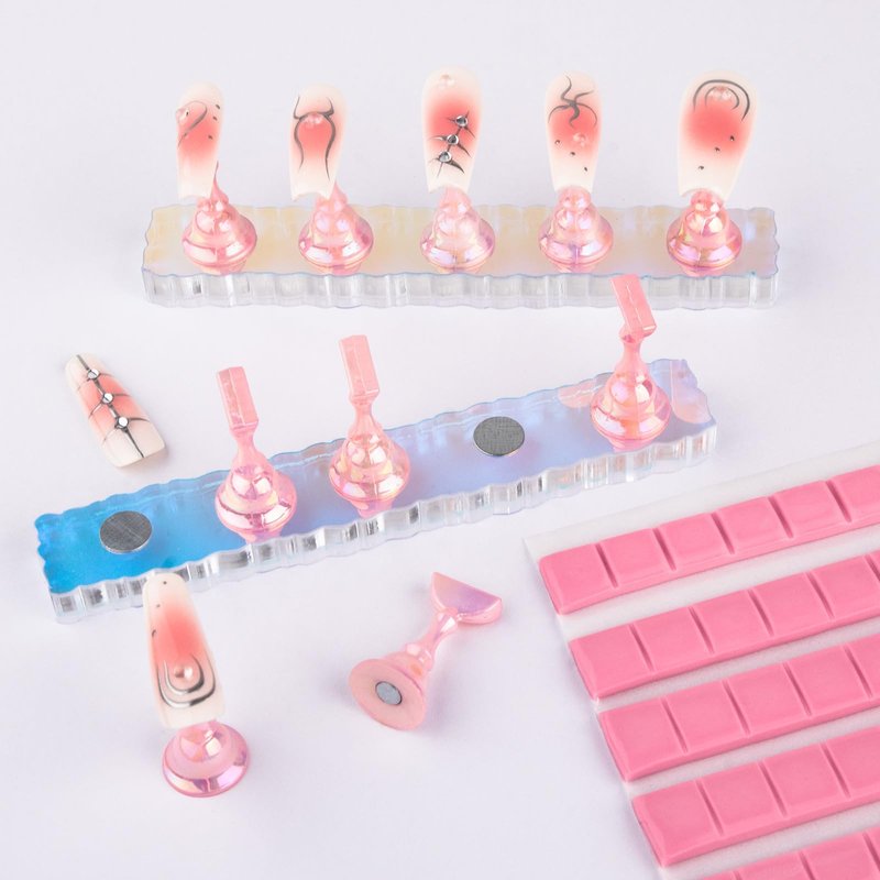 - Packaging Information: You will receive 2 sets pink aurora acrylic nail art display stands, each set includes 5 pieces chess-shaped nail tips and 1 piece aurora acrylic base, also comes with 48 pieces pink reusable adhesive putty, adequate enough for your daily nail art practice or display demands