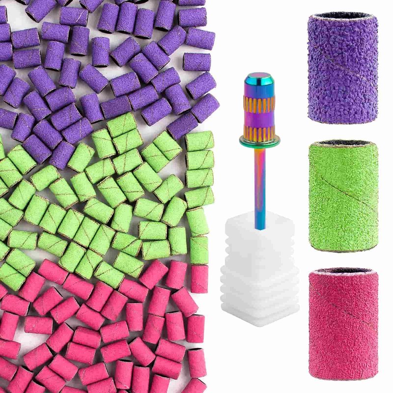 - Sanding Bands for Nail Drill Set: you will receive 210pcs colorful sanding bands,70pcs purple coarse 80 grit, 70pcs green medium 150 grit, 70pcs pink fine 240 grit with1pcs 3/32 inch cute iridescent nail bit replacement nail drill bits sanding band mandrel,for professional studio use or home use, perfect for manicures and pedicures