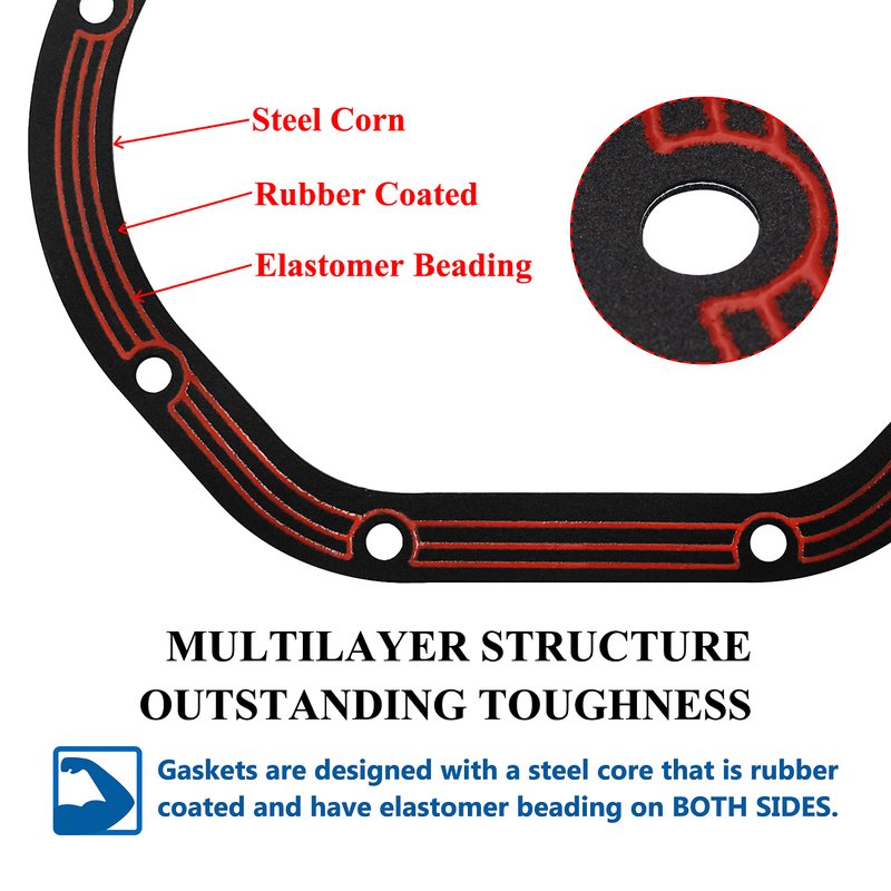 - The gasket is constructed of a high quality rubber-coated steel core to ensure proper sealing.