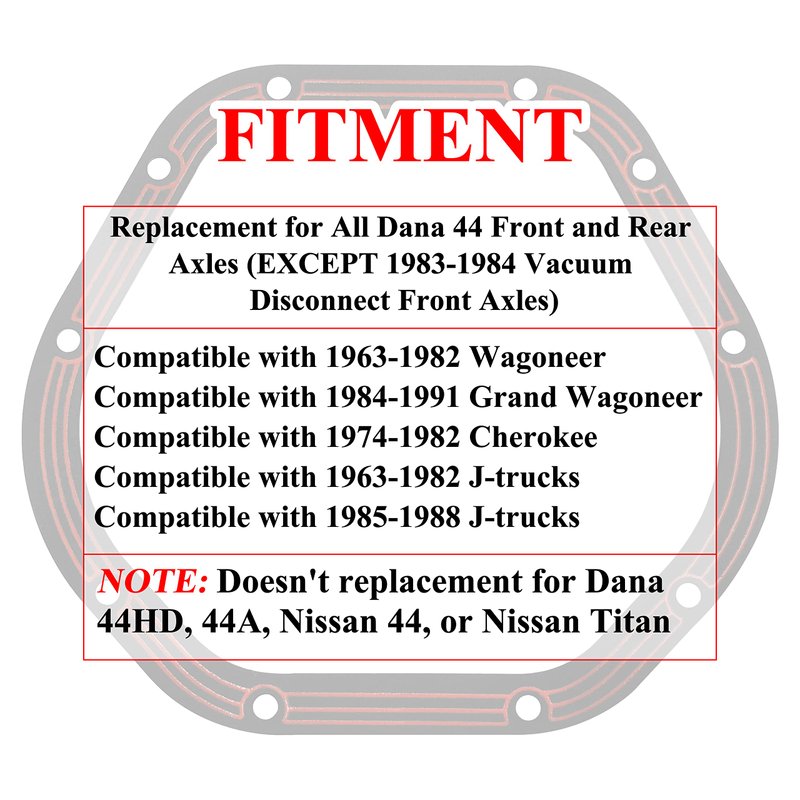 - It is not compatible with Dana 44HD, 44/226, 44A, or Nissan Titan