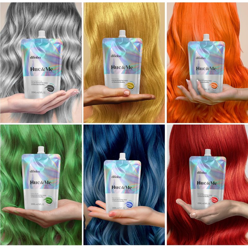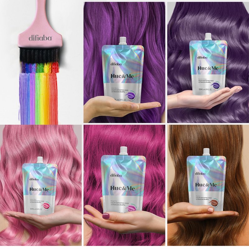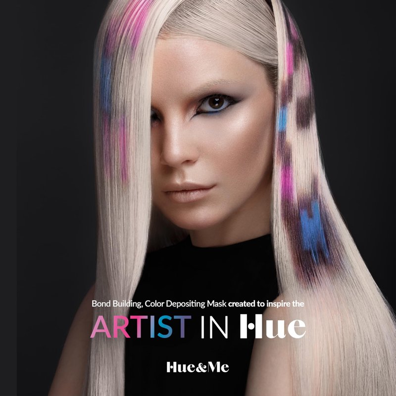 Semi-permanent direct-dye color + deep conditioning base! HUE & ME is the first ever Bond Building, Color Depositing Mask created to inspire the Artist in you. A revolutionary technology and creative tool, HUE & ME combines the reparative power of our *Inulin BondPlex to rebuild the hair's internal structure with our *high-definition pigments, allowing you to create INFINITE COLOR POSSIBILITIES. Hue&Me will last anywhere from 4 - 6 weeks depending on your regularly scheduled maintenance routine. In addition to professional use, we recommend using Hue & Me at least once or twice a week as a “color refresh” in between salon appointments. Hue&Me is COMPLETELY CUSTOMIZABLE. We have created a perfect palette, and with our CLEAR SEMI-GLOSS, you can intermix colors or soften any of our pigments making them the exact shade you’re looking for. The color possibilities are endless.