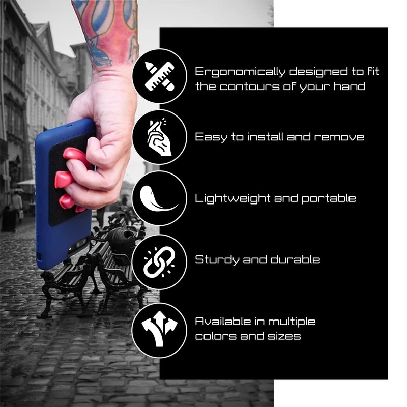 More reasons to choose our grip phone holder: Ergonomic design: This phone gripper is shaped to fit the natural contours of your hand, providing a comfortable and secure grip that reduces hand fatigue and strain.