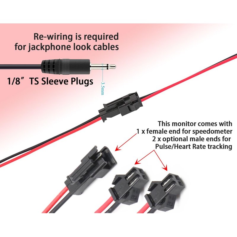 - 【3 x 2-PIN CONNECTION】Both speedometer & pulse trakcing connection are. DO NOT WORK ON 3.5 MM HEAD-PHONE LOOK CABLES