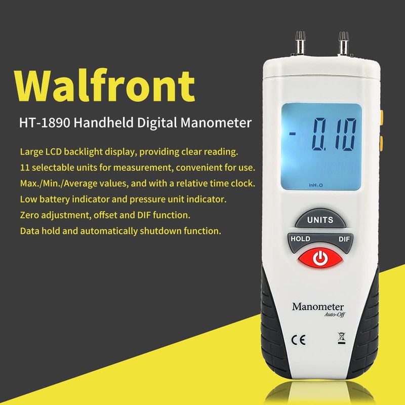 - [Large LCD Display] The digital manometer is equipped with large LCD backlight display for clear reading even in the dark.