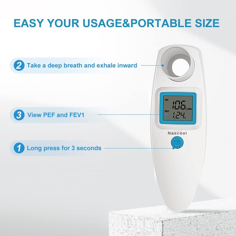 - PEF FEV1 automatically display-Measuring forced expiratory volume of 1 second (FEV1), peak flow rate(PEF).