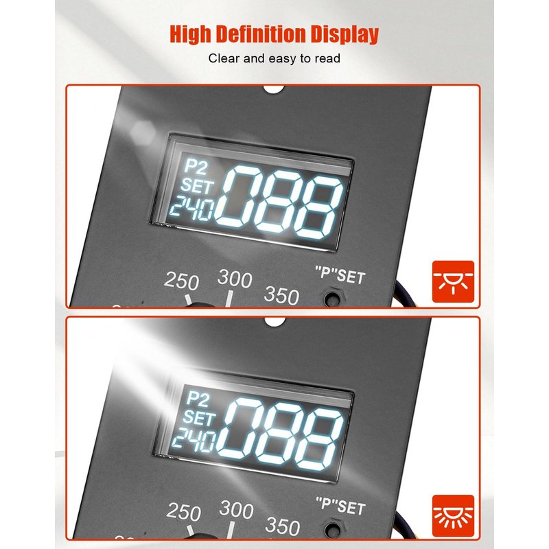 - LCD High-Definition Display: The LCD display on the pellet grill control panel can clearly and easily display the cooking temperature. The temperature value can still be read in seconds in the hot sun/backlight environment