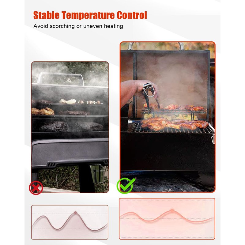 - High Precision: The high-precision temperature sensor is resistant to high temperatures to ensure stable and safe temperature control in harsh barbecue environments. Avoid overheating or uneven heating to improve food cooking quality