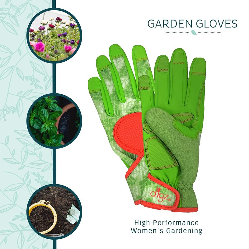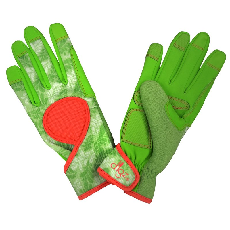- Digz Women's Signature High Performance Women's Gardening and Work Gloves are constructed from 4-way spandex providing comfort without compromising dexterity | Green Leaves Pattern | Size: Small