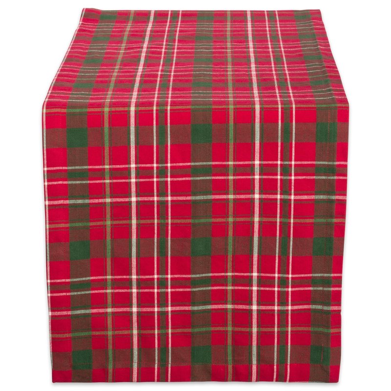 DII Holiday Dining Table Linen Collection Tartan Holly Plaid, Christmas Table Runner, 14x72, Red & Green