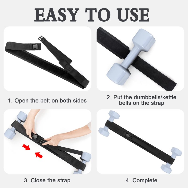 - đȘăEasy to UseăThe hip thrust straps are designed to be easy to use, allowing you to equip and then work out quickly, just 2 steps to starting the hip thrust exercise. Step1: Open the two straps on both sides; step2: Simply loop the straps through dumbbells/kettlebells and secure them with the Velcro, buckle up the fixed snap and you can start!