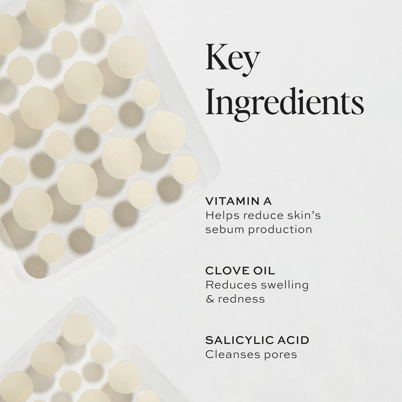 - PIMPLE PATCHES FOR FACE: These zit patches keep blemishes at bay with a powerful yet non-irritating combination of hydrocolloid, vitamin A, clove oil, and salicylic acid. The power patch is your best friend when it comes to blemish control. Remember, don't pick, patch!