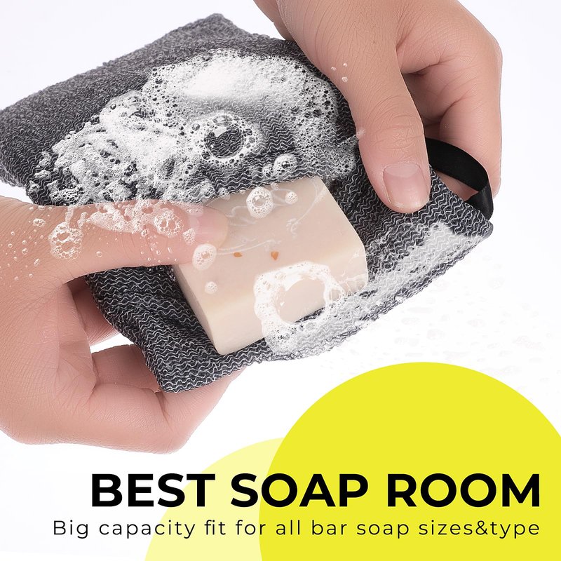 - 【Diverse Applicability】: You can put large pieces of soap or leftover bits into the soap sack, significantly extend the use time of the soap. Even if there is only a little soap left, which can be fully utilized. Shower sponges for men can also be poured into shower gel to help you quickly foam and deep clean, and soap nut bags can also be applied alone to clear waste skin keratin.