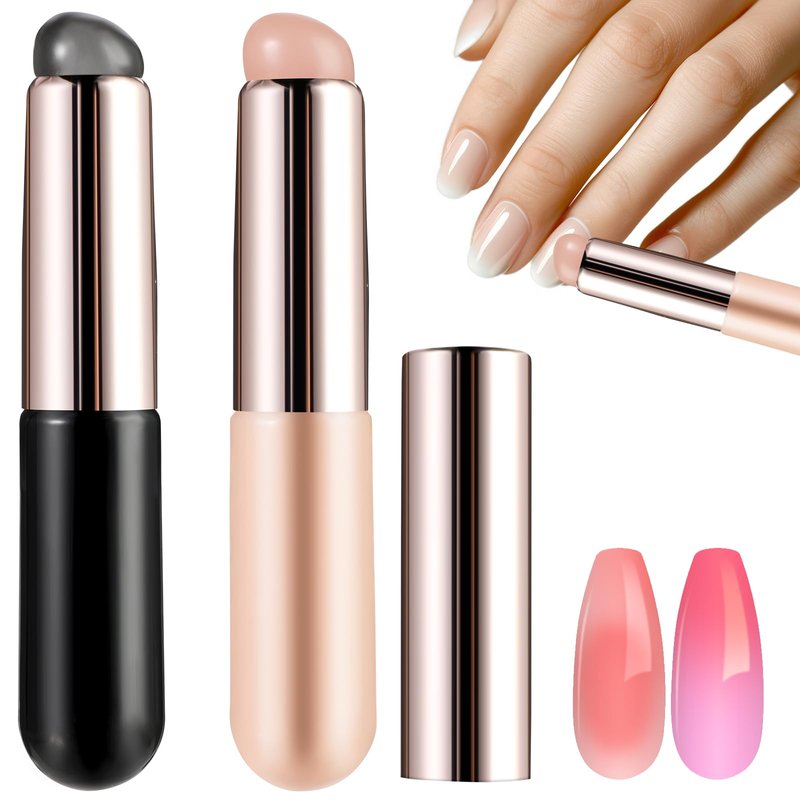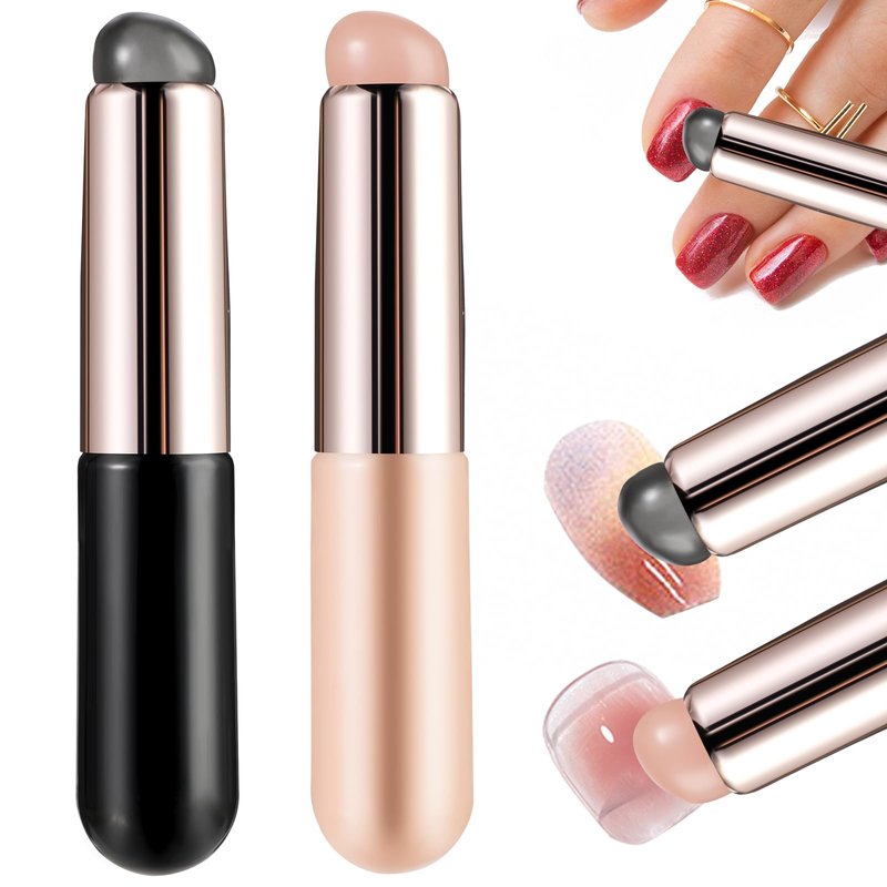 Dimeho Ombre Brush Nail Art, 2 Pcs Silicone Chrome Applicator for Nails Reuable Nail Gradient Brush Jelly Head Nail Brush Silicone Gel Nails Art Applicator for Concealer Lipstick DIY Manicure Tool