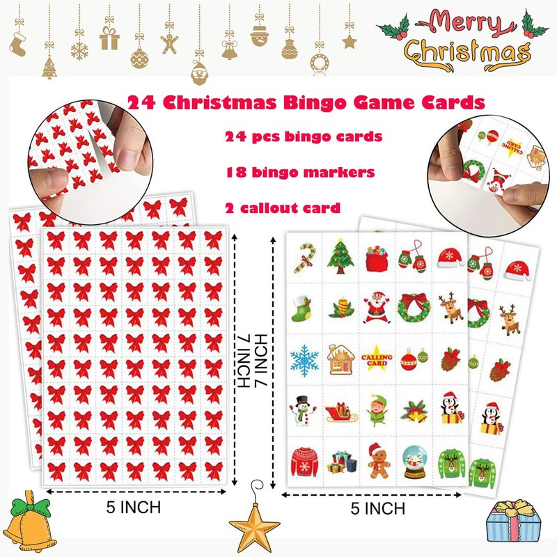 - Great Value Christmas Game Pack: This Christmas Bingo Game Set includes 24 pcs bingo cards,18 bingo markers and 2 callout card.Suitable for 24 people to play games,it is a great choice for friends' gatherings and family games