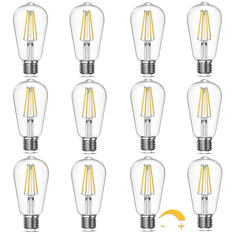 Dimmable Edison LED Bulbs 60 Watt Equivalent, 6W, Antique E26 LED Bulb 60 Watt Clear Light Bulbs, 2700K Soft Warm White Light LED Bulbs ST64 with 750LM, CRI 85+, E26 Medium Base,12Packs