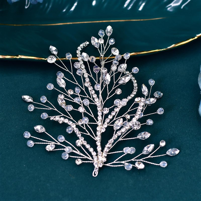 This headband is the epitome of timeless beauty, making it suitable for both traditional and modern weddings. The combination of crystal and silver leaf design adds a touch of sophistication that effortlessly complements any bridal gown or theme.