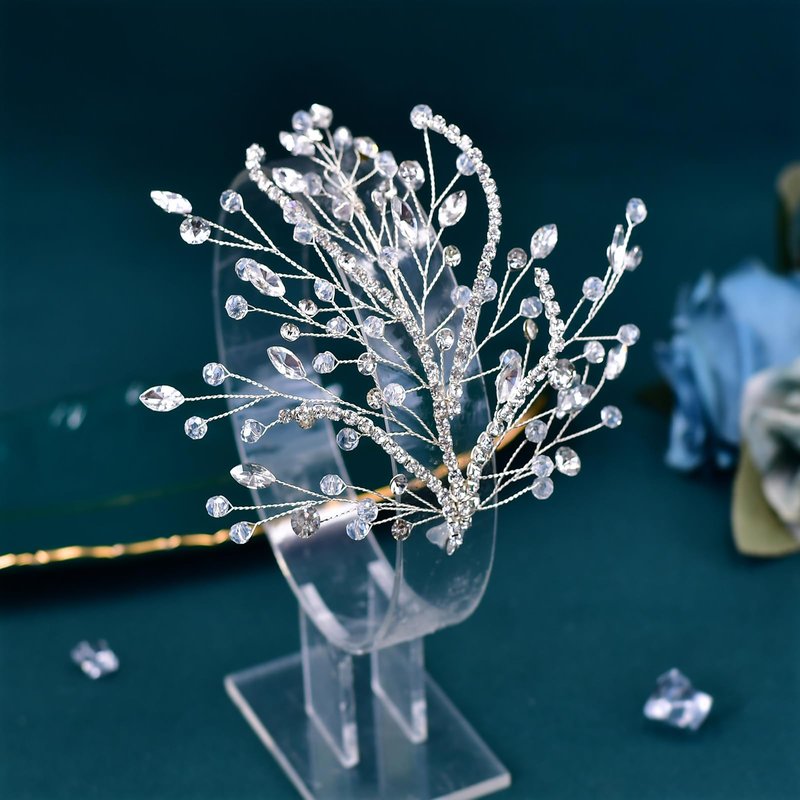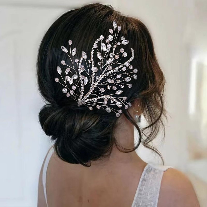 Whether you're a modern bride seeking a touch of sparkle or a classic bride aiming for timeless beauty, our Crystal Silver Leaf Wedding Headband is the ideal accessory to complete your bridal look. Add a touch of glamour to your special day and make a lasting impression with this breathtaking headpiece.