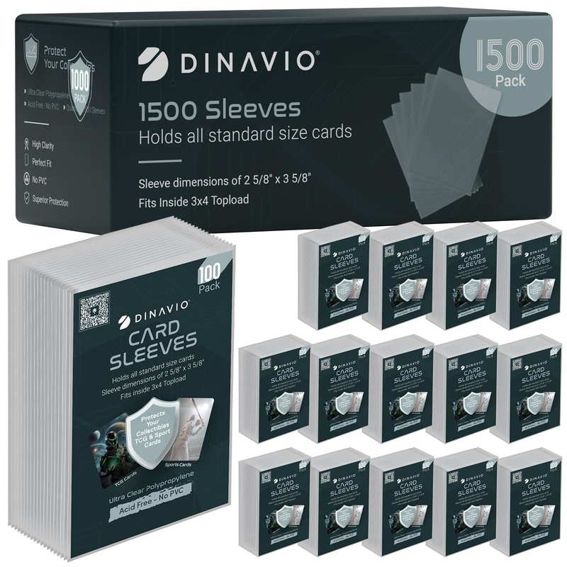 Dinavio Crafthouse 1500 Card Sleeves Penny Sleeves - Clear Soft Trading Card Sleeve Compatible with Pokemon Baseball MTG Lorcana YGO - Penny Sleeves for Pokemon Cards and Trading Cards (1,500 Pack)