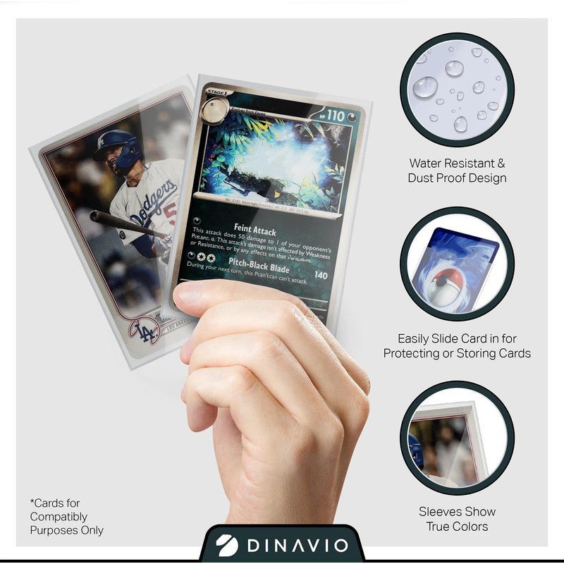 - Crystal Clear Visibility — Our ultra-clear TCG and sports cards sleeves provide a flawless true color view of your cards. Display your rare finds without compromising on protection — ideal for collectors who want both clarity and care.
