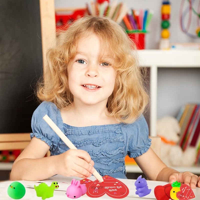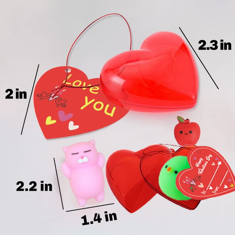 - Valentine's Day gift: These special cute mochi squishy toys with cards and heart cases are perfect idea for Valentine classroom exchange gifts, Valentine party favors, classroom prizes, goodies bag stuffers, stress relief, birthday gifts or any Valentine’s event. It is a fun way to improve social skill and a chance to express gratitude to family, friends and classmates!