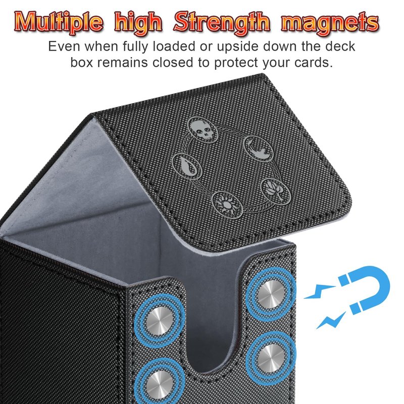 - 【Quality material:】 deck game box compatible with MTG is made of PU leather, scratch-resistant, wear-resistant, with non slip texture, hard cover on the back and front, also equipped with magnet sealing and tight sewing thread, will hold your cards safely for a long time