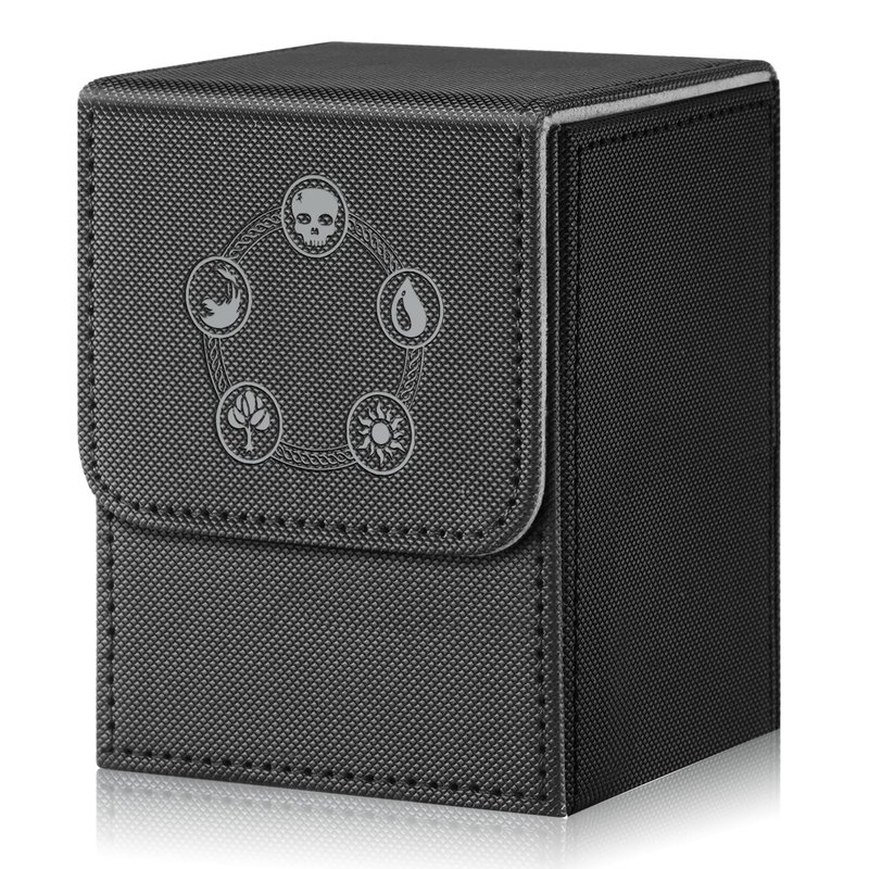 DingGuagua Card Deck Box for MTG,YuGiOh, KeyForge, Digimon FAB Card Storage Box Fits 230+ Single Sleeved Cards, PU Leather Strong Magnet Card Deck Case Holder for TCG CCG Magic Commander (Black&grey)