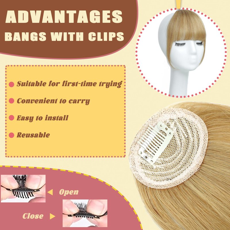 - 💥Clip on bangs for women featuring a simple clip-on design, easy to use and leaves no traces behind. Even those less familiar with hairstyling can easily manage the faux bangs. Bangs can be effortlessly clipped on and removed, making hairstyle transformations a breeze.