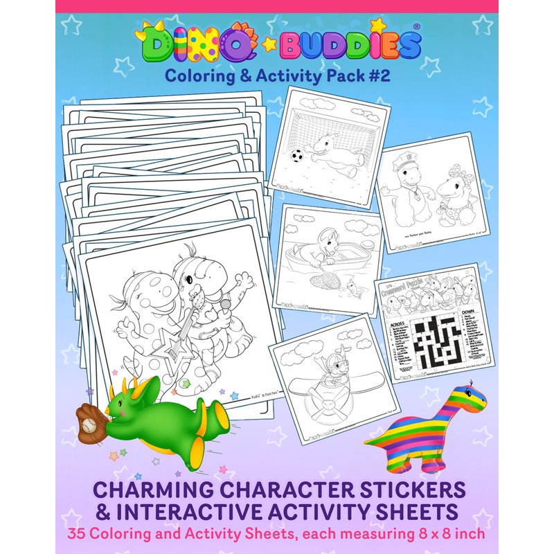 Dino-Buddies® Coloring & Activity Pack #2 - Cute Dinosaur Coloring Book with Stickers, Make-A-Face & Motivational Sheets - Activities for Kids Ages 3+