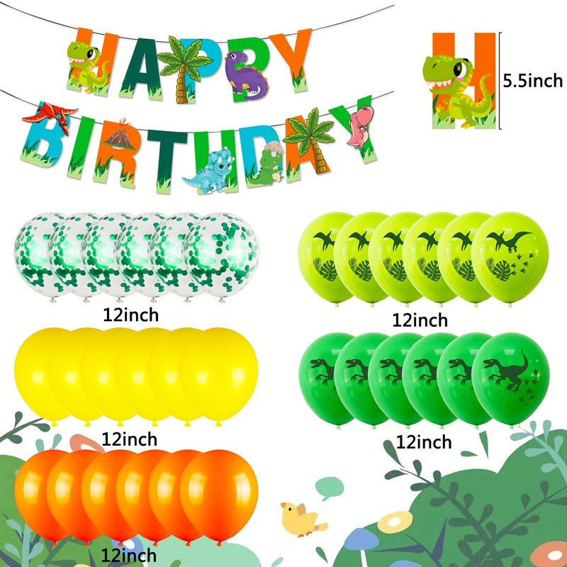 - 【Dinosaur Birthday Decoration Set 3】incl latex balloons*20,"Green Dinosaur Birthday Banner"x1, "Dinosaur-theme cake decoration"x7 ,Number "23",Dinosaur Aluminium Foil Ballonx7 (XXL Version*4+Q-Version*3), 10m band x1.