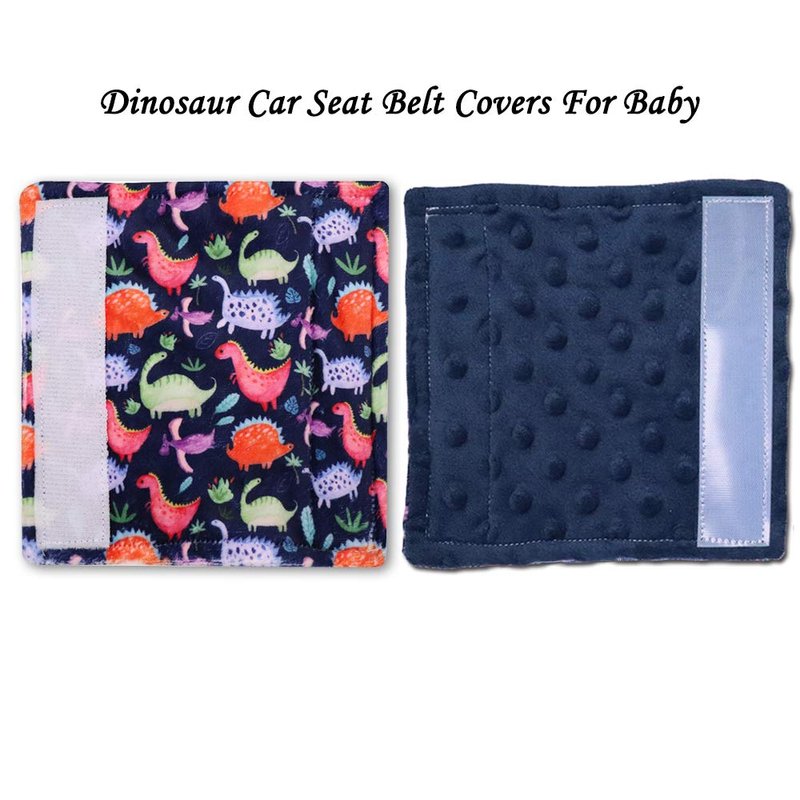 Dinosaur Car Seat Belt Covers for Baby, Toddlers Stroller Seat Strap Covers, Car Seat Straps Shoulder Pads for Girls Boys, Minky Seat Belt Protectors for Car Seats, for Kids Newborn Infants