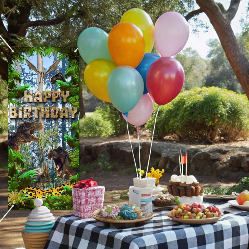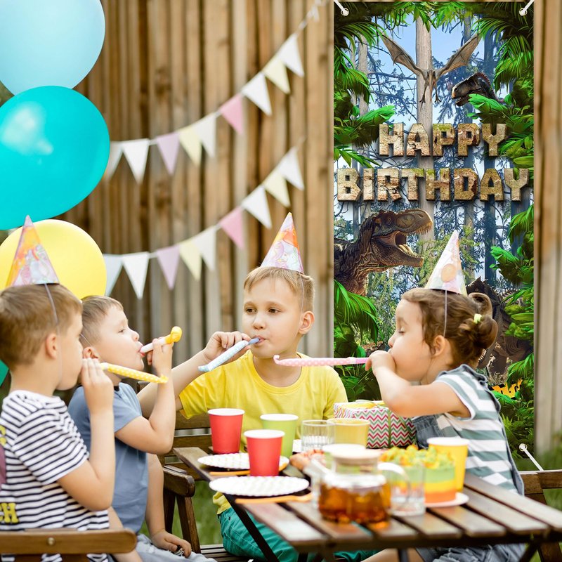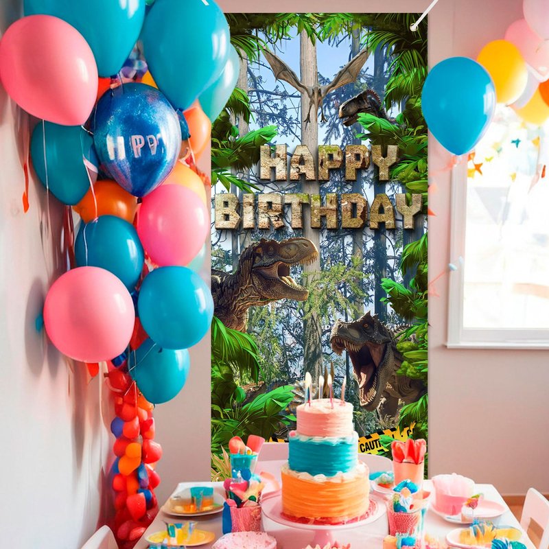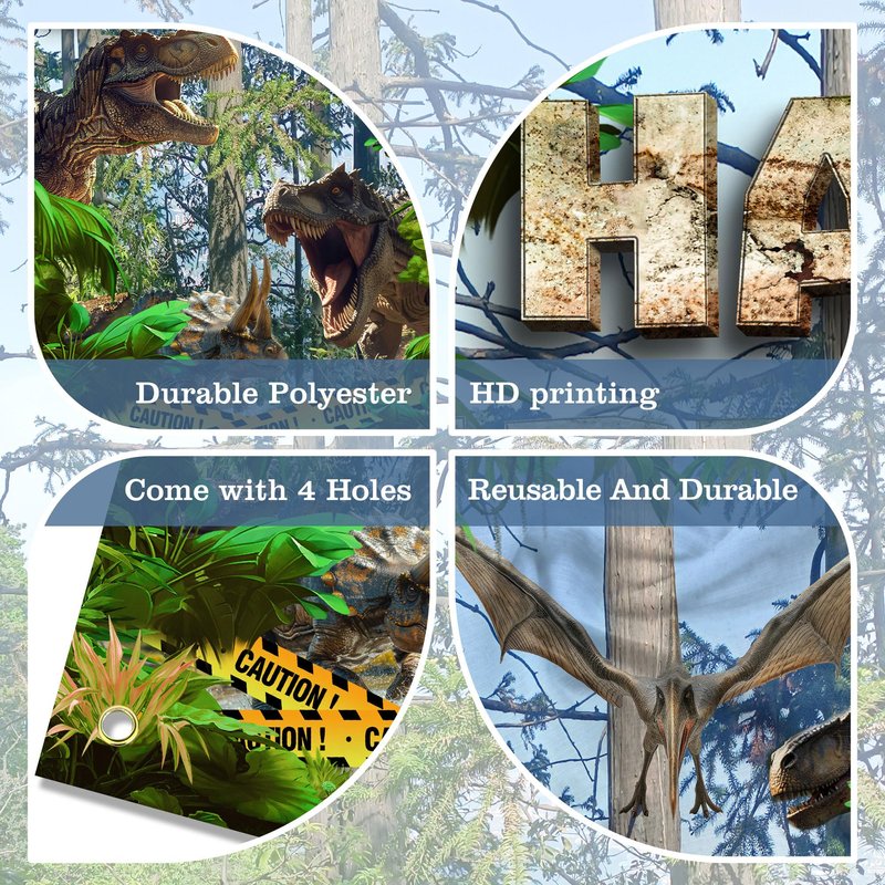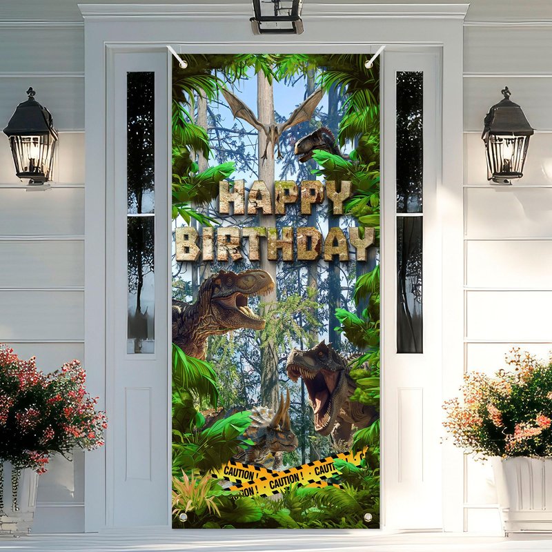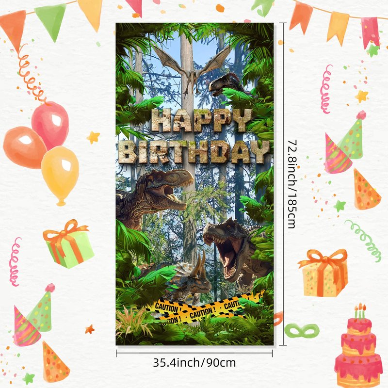- Suitable scene:This jungle dinosaur theme door banner is designed by several different dinosaurs, such as Tyrannosaurus Rex, Pterosaur, Triceratops, which are lifelike and create an impressive and cheerful children's dinosaur party atmosphere for you and your family. You can hang them on walls, doors, windows, etc., or use them as photography backgrounds, wall decorations, table runners, daily or party tablecloths, it will definitely make your events and parties impressive!