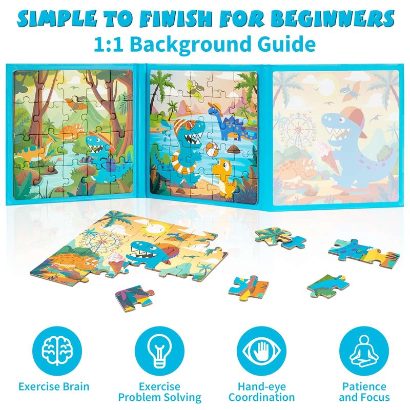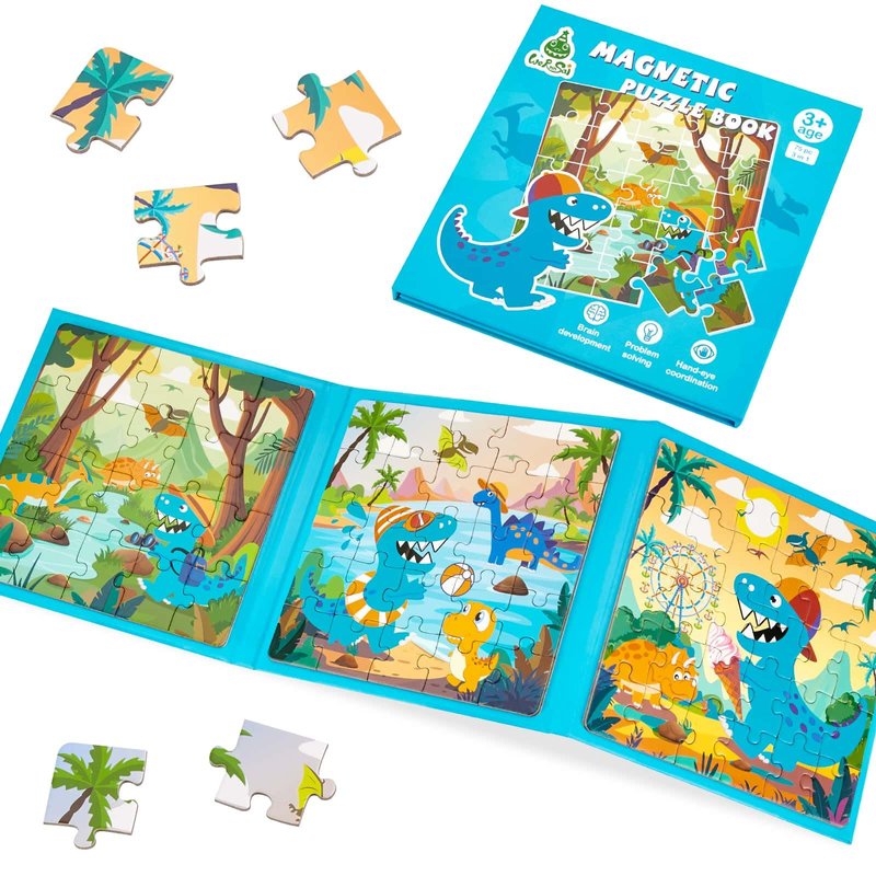 - 3 IN 1 CHILDREN'S PUZZLE: This dinosaur magnetic puzzle set includes 20, 25, and 30 pieces, offering varying difficulty levels. The cute designs engage kids, providing a sense of accomplishment when completed