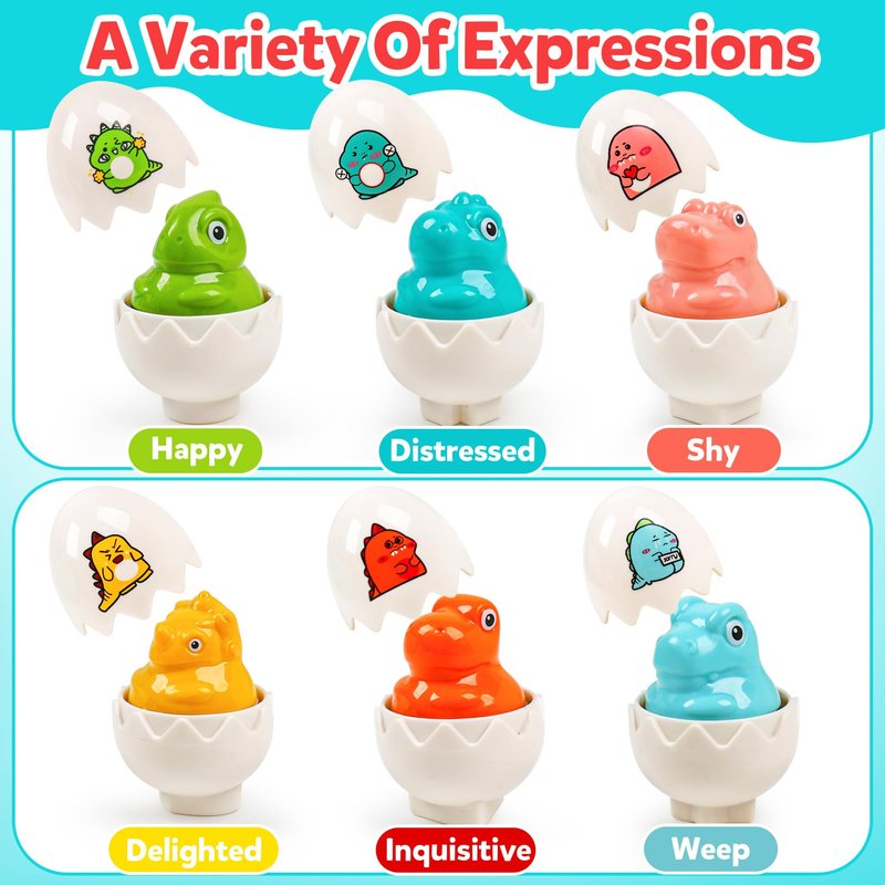 - Color Matching and Shape Sorting:These eggs offer more than just surprises and sounds. Each dinosaur has a unique color that matches one of six colors on the egg's face,allowing toddlers to explore different expressions and develop color recognition while Ability, as toddlers manipulate and connect egg, they can improve hand-eye coordination, dexterity and grasp control.