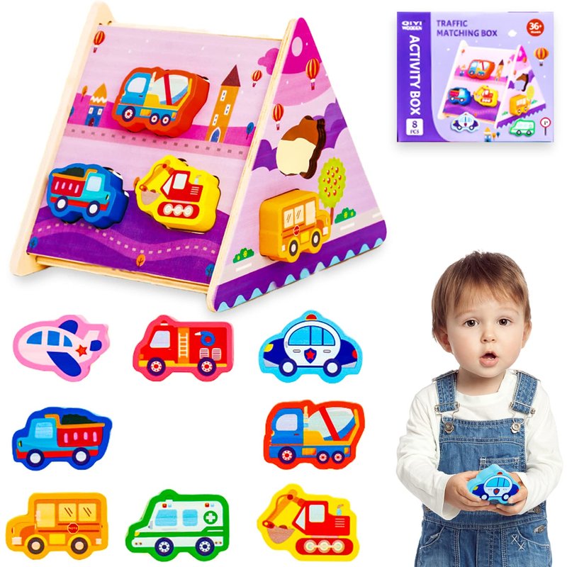 Dinosaur Toys for Kids 3-5,Wooden Dinosaur Puzzles Montessori Toys for 1 2 3 4 5 Year Old Boy Girl Toddler,Sensory Stacking Blocks Dinosaur Toys for Kids 2-4 (Transportation)