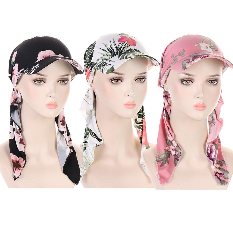 DINPREY Long Pretied Head Scarves for Women Bandana Turban Hat Chemo Cancer Headscarf Headwraps Headwear for bald women hair wraps Hair Cover Hat (3 PCS Flower)