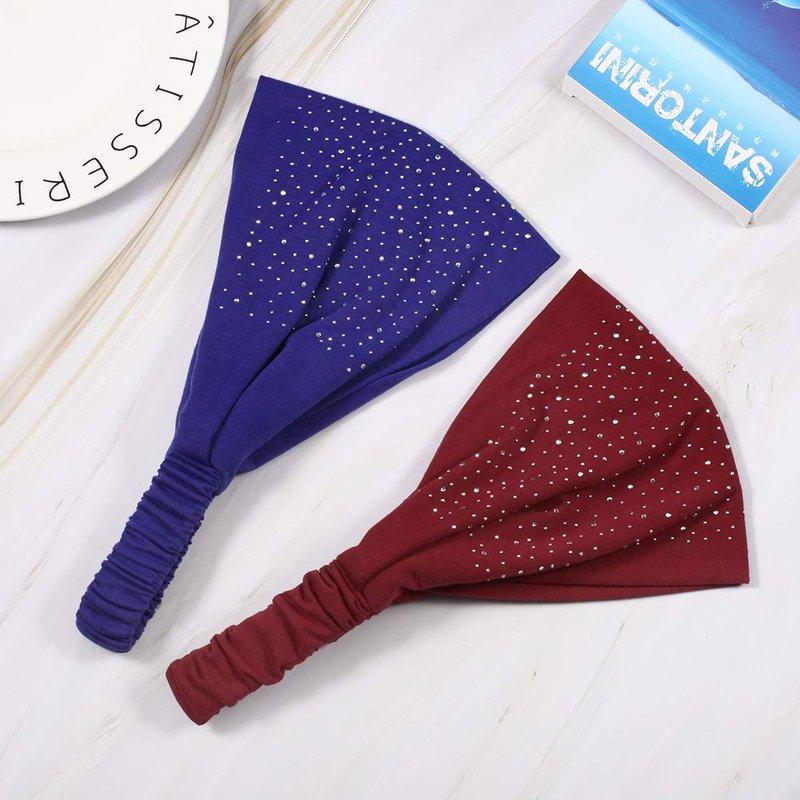 DINPREY Rhinestone Dots Headband Wide Bandana Headbands Workout Hair bands Womens Yoga Bandana Head Wrap Solid Diamond Headband Twisted Hair Band Makeup Headband (4 Pcs Rhinestone)