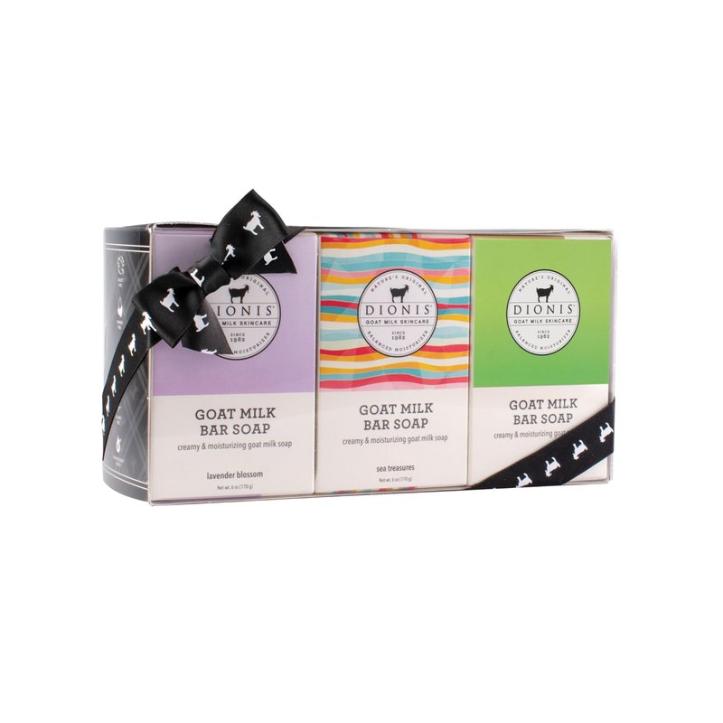 Experience the ultimate in gentle cleansing and luxurious hydration with the Dionis Goat Milk Bar Soap Fresh & Floral Gift Set of 6. This creamy goat milk bar soap cleanses without the harsh chemicals or detergents typically found in other soaps, making it perfect for all skin types, especially sensitive skin. Rich in fatty acids, this soap supports healthy-looking skin and provides deep moisturizing benefits. Our Fresh & Floral soap is triple milled, ensuring a high-quality, long-lasting bar that delivers fresh goat milk nourishment to hydrate and soften dry skin. This gift set includes six delightful fragrances: - **Lavender Blossom**: A captivating blend of Aurelian lily blossom, juicy orange, and cassis, surrounded by jasmine, rose, and lavender on a creamy background of coconut, apricot nectar, and musk. - **Sea Treasures**: Evokes nostalgic warm ocean breezes intertwined with the soft floral notes of sweet pea. - **Verbena & Cream**: Combines the refreshing scent of lemon verbena with the wholesome goodness of natural cream for an irresistibly crisp fragrance. Paraben-free, cruelty-free, and made in the USA, this set offers a luxurious and ethical skincare experience. Treat yourself or a loved one to the nourishing, moisturizing, and hydrating benefits of Dionis Goat Milk Bar Soap Fresh & Floral Gift Set of 6.