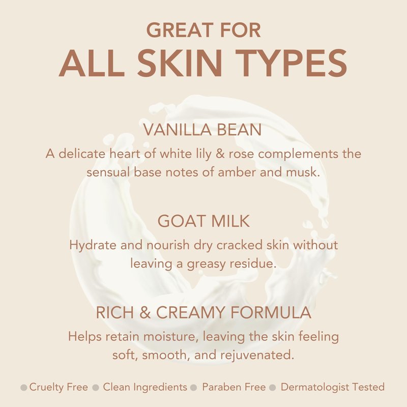 Dionis Goat Milk Hydrating Skincare Scented Cream, Rich & Creamy Daily Moisturizing Vanilla Bean Body Lotion For Dry Skin, Made in the USA, Cruelty-Free & Paraben-Free, 8.5 oz Bottle