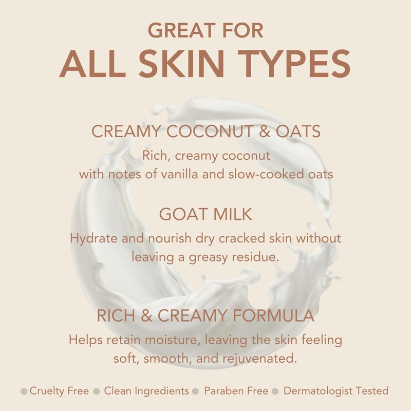 - Formulated with goat milk, rich in vitamins A, C, D, E, and B complex, lipids, and triglycerides, our body lotion preserves your skin's microbiome, promoting moisture retention and suppleness.