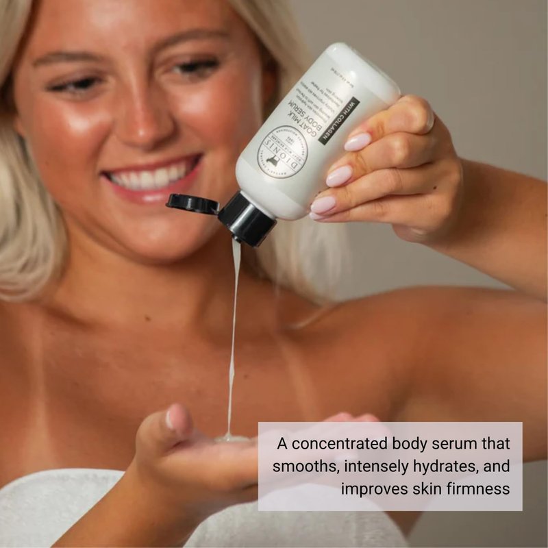 - Hydrating Moisturizer - Our Goat Milk Body Serum with Collagen is a concentrated body serum that smooths, intensely hydrates, and improves skin firmness. Formulated with goat milk and collagen, this wrinkle-targeting body serum leaves skin feeling and looking soft, hydrated, and radiant.