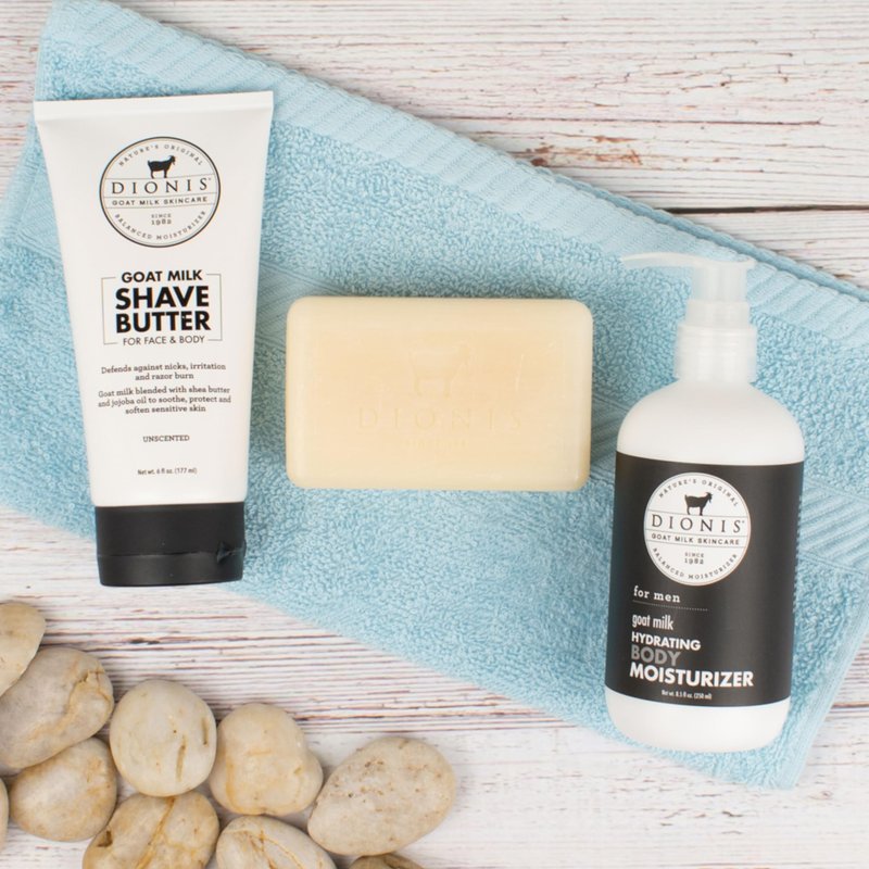 - Leave His Skin Feeling Soft and Refreshed - Give dad the gift of luxurious grooming with Dionis 3-piece set, it's a Father's Day treat he'll cherish, a gesture of care and appreciation for Dad's self care routine. The hand & body cream deeply nourishes his skin, the shave butter ensures a smooth shave, and the bar soap leaves him feeling refreshed. It's a thoughtful present that speaks volumes about your admiration for him.
