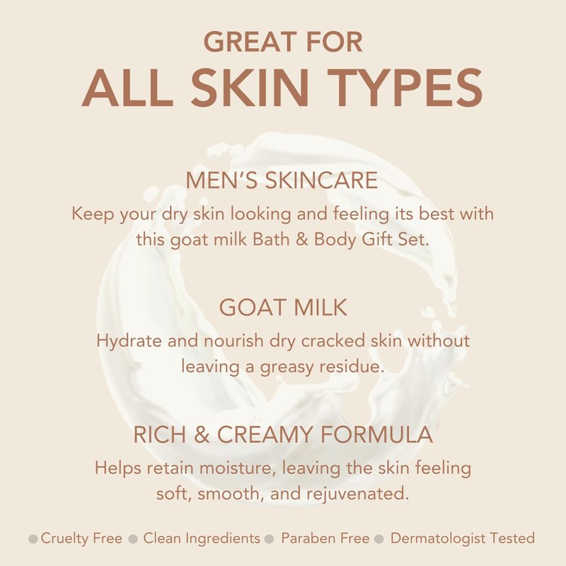 - Skin's Best Friend - Goat milk is naturally enriched with high amounts of protein, fat, iron, and lots of vitamins. It has a pH nearly the same as human skin that allows our product to easily absorbed into human skin with no greasy residue, keeping you moisturized and nourished.