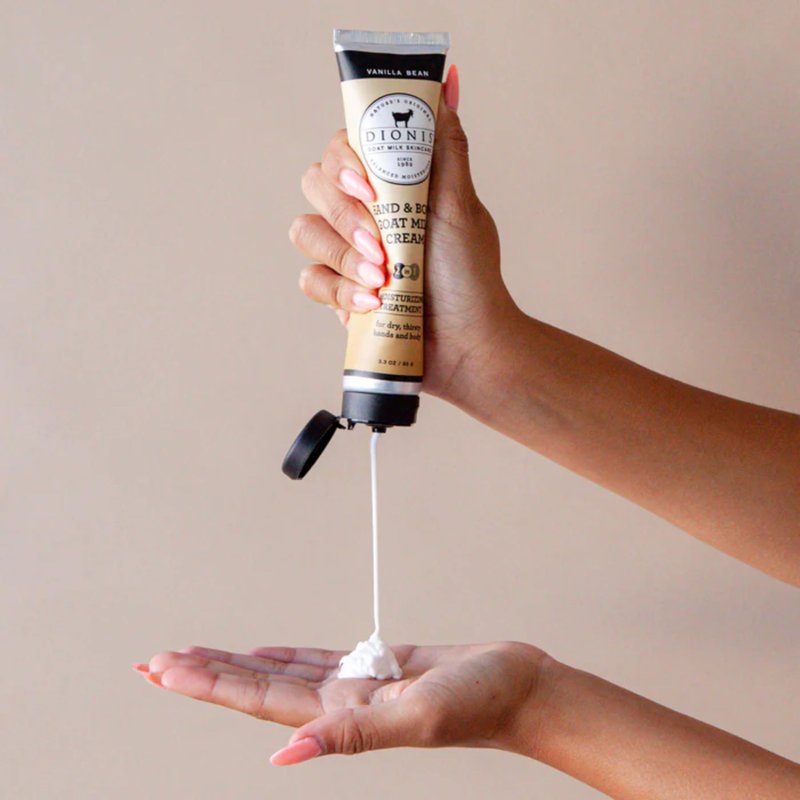Experience the ultimate in skin-soothing luxury with our hand and body cream. Formulated with the finest ingredients, our moisturizing treatment hydrates without any greasy residue. Rich in natural goat milk, it nourishes and retains skin moisture, perfect for dry skin. Vanilla Bean fragrance adds a warm, irresistible aroma. Regular use leaves skin silky smooth, without the hassle of greasiness. Dermatologist tested, cruelty-free, and made in the USA, our products ensure quality you can trust. Choose Dionis Goat Milk Skincare for a guilt-free, luxurious experience.
