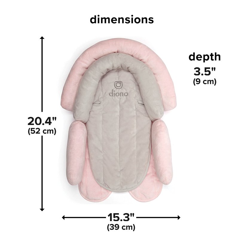Diono Cuddle Soft 2-in-1 Baby Head Neck Body Support Pillow For Newborn Baby Super Soft Car Seat Insert Cushion, Perfect for Infant Car Seats, Convertible Car Seats, Strollers, Gray/Pink