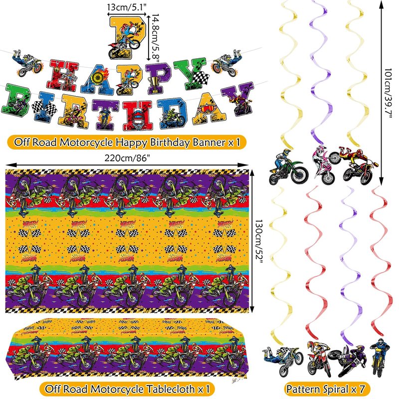 - Wide Application: Suitable for motorcycle-themed birthday parties, game parties, class holiday parties, family entertainment parties, outdoor gatherings, holidays, clubs, and more! Enjoy the Dirt Bike party with your family and friends.
