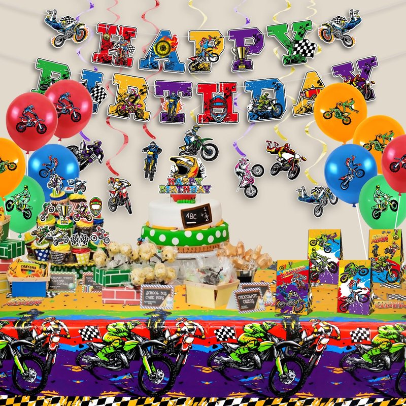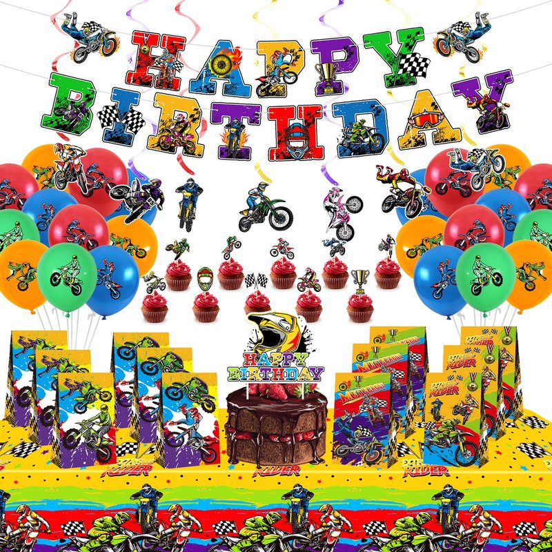 - All of the boys have a motocross dream. We believe that kids will like these motocross party decorations, which are ideal for complementing your dirt bike-themed birthday party decorations and creating an energetic party atmosphere.