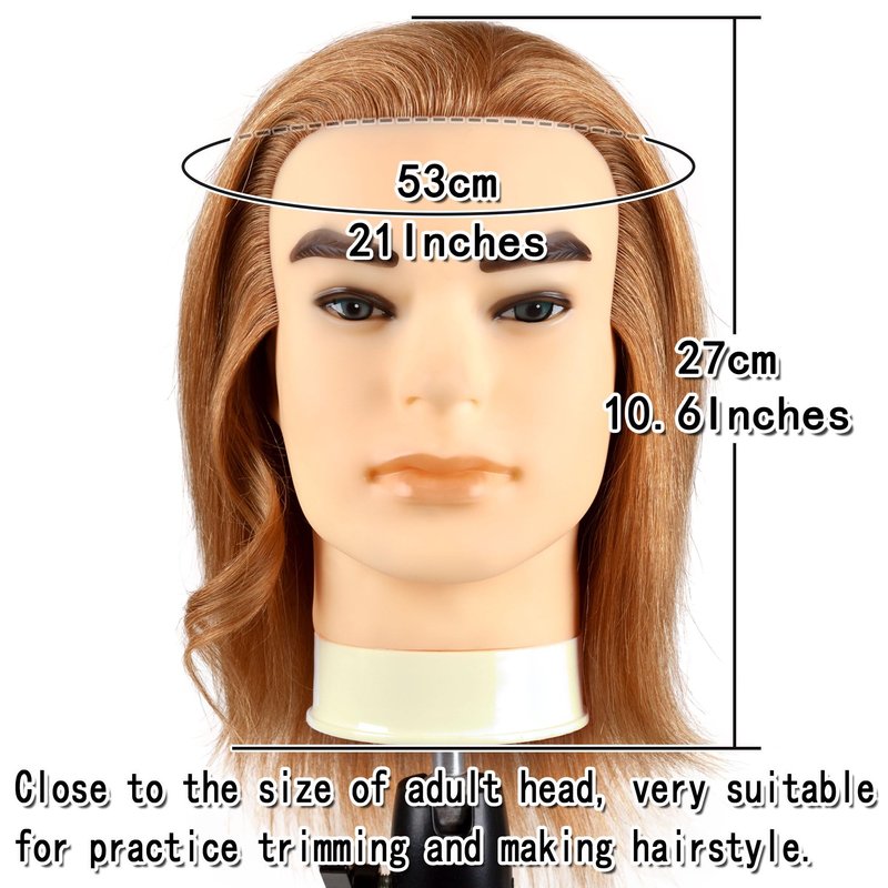 - Men Mannequin Head with Human Hair Color: 3B#, Hair Length: 8Inch. Head Height: 10.6 Inch (27 CM), Head Circumference: 21 Inch (53 CM), Base Hole Diameter: 1 Inch, Weight: 500 Grams. Handsome appearance, close to adult head size, easy to use.