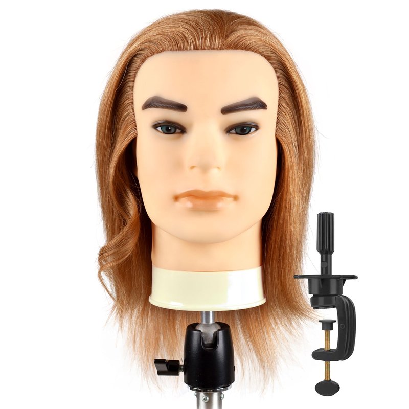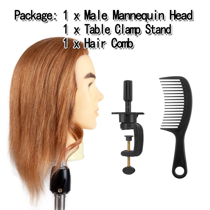 - 1 x Male Mannequin Head with Human Hair, 1 x Talbe Clamp Stand, 1 x Hair Comb.